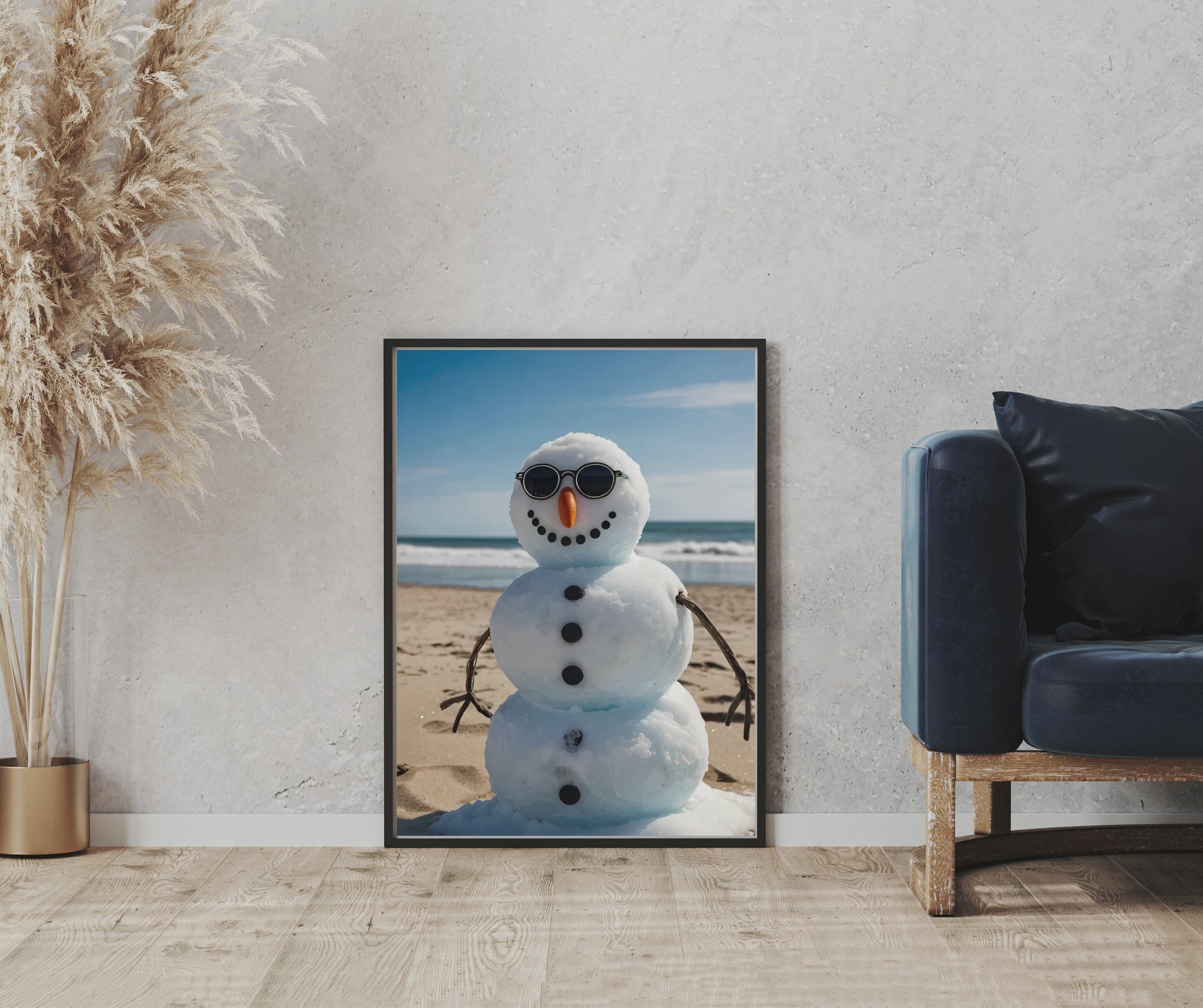 “Snowman’s Last Vacation” is a playful, surreal artwork that flips the seasonal script. Standing proud in shades and classic buttons, this frosty figure poses confidently under a blazing sun, smack in the middle of a beach where no snow should ever belong. With a carrot nose and a cool attitude, he's not just melting — he’s making a statement. It’s absurd, joyful, and strangely poetic: a visual metaphor for existing out of place and doing it anyway.
