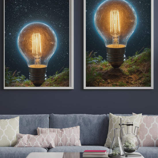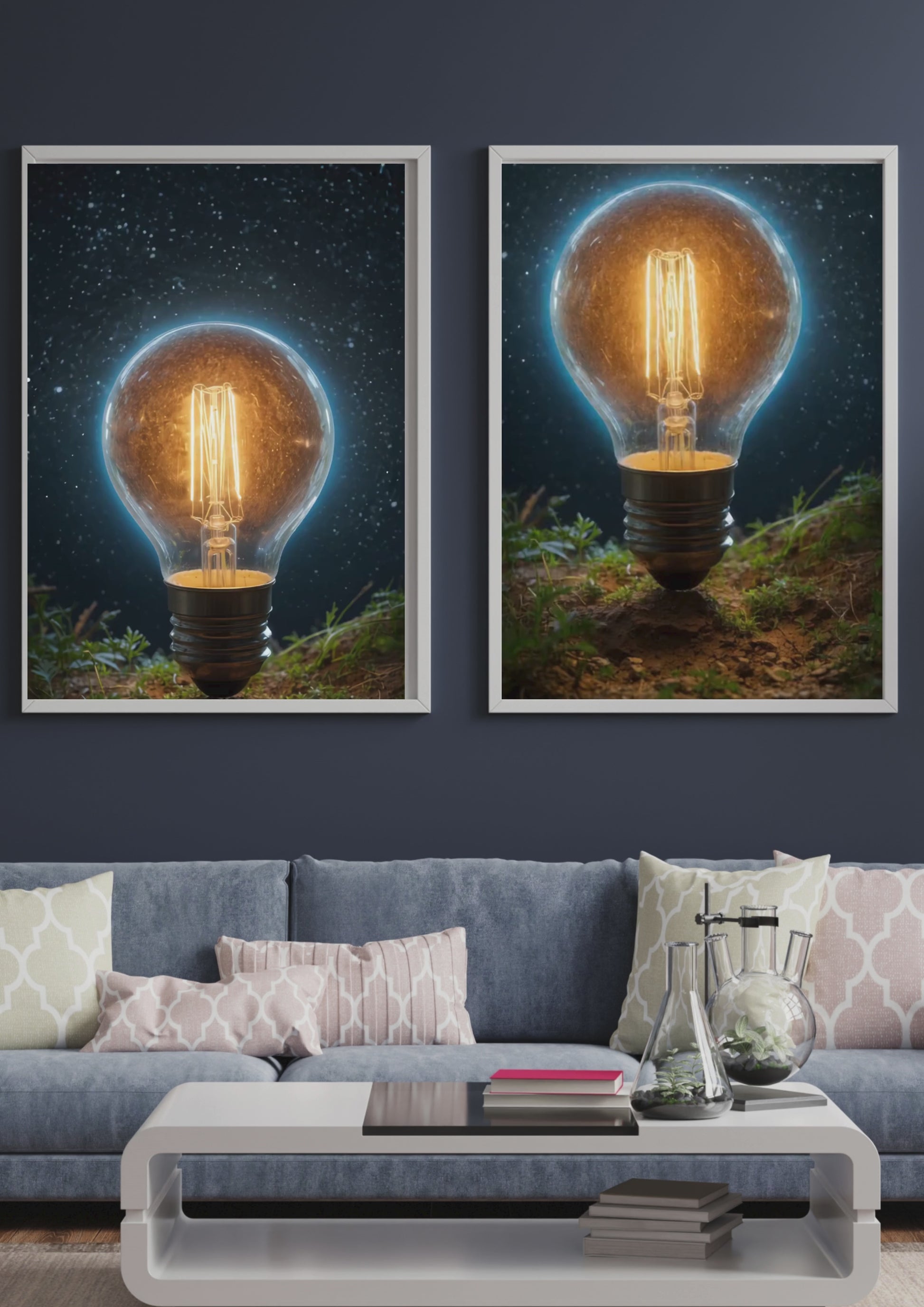 “The Light of the World” is a poetic, surreal visual that blends invention with nature. A glowing filament bulb rises from the earth like a seed of thought, radiating warmth into the vast night sky. Surrounded by soil, roots, and stars, the image speaks of ideas that emerge not from noise — but from stillness. It’s a tribute to quiet genius, grounded brilliance, and the luminous force of imagination.